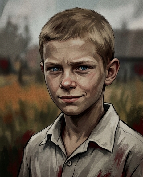 ΠΠΎΠΉΠ΄Ρ Π²ΠΎ Π΄Π²ΠΎΡ, ΠΌΠ°Π»ΡΡΠΈΠΊ ΠΎΠ±Π½Π°ΡΡΠΆΠΈΠ» ΠΌΠ°ΡΡ ΠΈ ΡΠ΅ΡΡΡΡΠ½ΠΊΡ ΠΌΡΡΡΠ²ΡΠΌΠΈ Π½Π° Π·Π΅ΠΌΠ»Π΅ Ρ ΠΊΡΡΠ»ΡΡΠ°. ΠΠ· Π΄ΠΎΠΌΠ° Π²ΡΡ ΠΎΠ΄ΠΈΠ»ΠΈ Π½Π΅ΠΌΠ΅ΡΠΊΠΈΠ΅ ΡΠΎΠ»Π΄Π°ΡΡ Ρ Π½Π°Π³ΡΠ°Π±Π»Π΅Π½Π½ΡΠΌ Π΄ΠΎΠ±ΡΠΎΠΌ. ΠΠΈΠΊΠΎΠ»ΠΊΠ° Π½Π΅ Π·Π°ΠΏΠ»Π°ΠΊΠ°Π» ΠΏΡΠΈ ΡΡΠΆΠΈΡ β ΠΎΠ½ ΡΠΏΡΡΡΠ°Π»ΡΡ Π² ΠΊΠΎΠ½ΠΎΠΏΠ»Π΅ ΠΈ ΠΏΡΠΎΠΏΠ»Π°ΠΊΠ°Π» Π²ΡΡ Π½ΠΎΡΡ. ΠΠ°ΡΡΡΠΎ ΠΎΠ½ ΡΠ°ΡΡΠΏΡΠΎΡΠΈΠ» ΡΡΠ°ΡΠΈΠΊΠΎΠ², ΠΊΡΠ΄Π° ΡΡΠ»ΠΈ Π½Π΅ΠΌΡΡ, ΡΠΎΠ±ΡΠ°Π» ΠΊΠΎΡΠΎΠΌΠΊΡ, Π½Π°ΠΊΡΡΠ» ΡΠ΅Π»Π° ΠΌΠ°ΡΠ΅ΡΠΈ ΠΈ ΡΠ΅ΡΡΡΡΠ½ΠΊΠΈ ΡΠΈΡΡΠΎΠΉ ΡΠΊΠ°ΡΠ΅ΡΡΡΡ ΠΈ ΡΡΡΠ», Π½Π΅ ΠΎΠ³Π»ΡΠ΄ΡΠ²Π°ΡΡΡ.