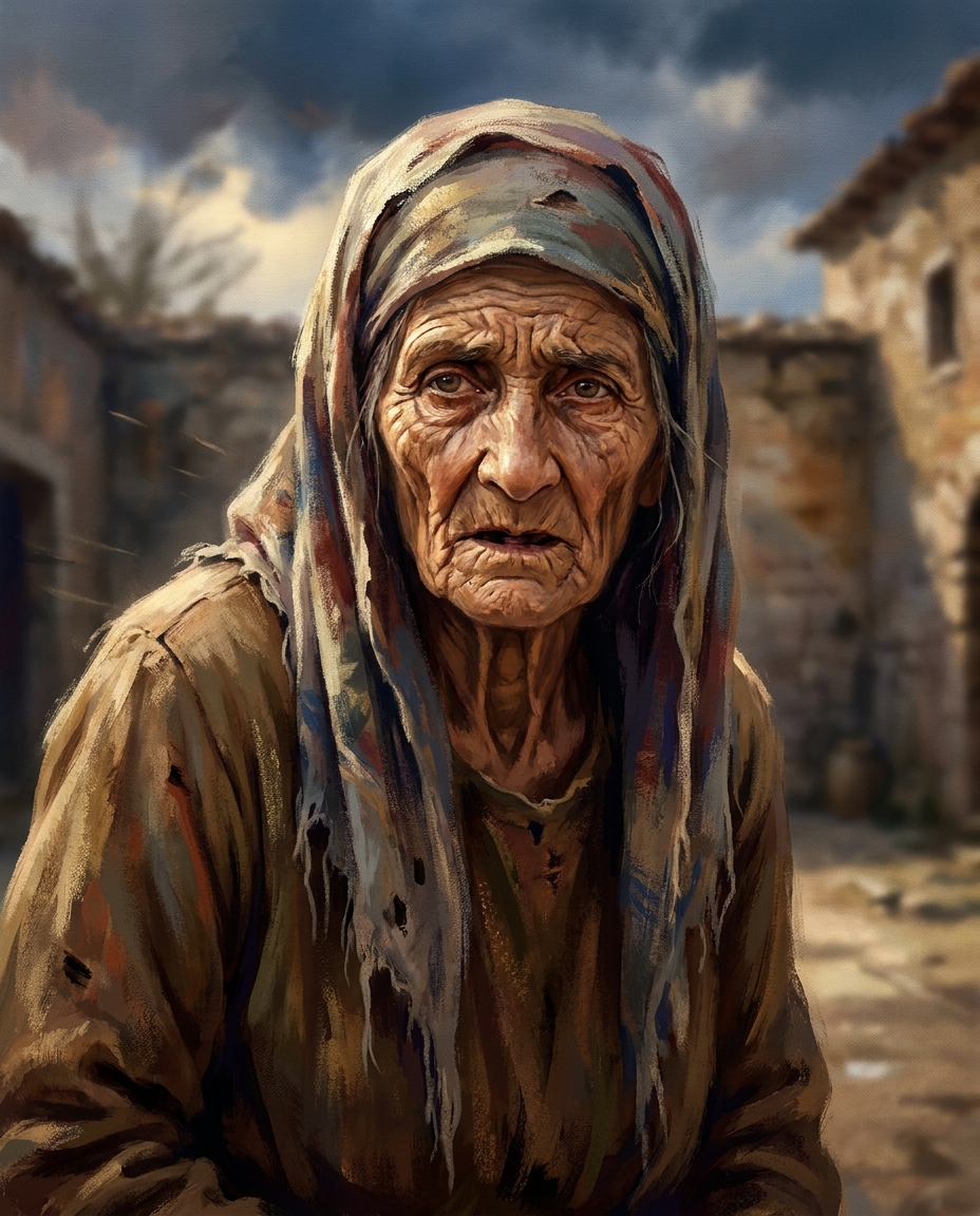 Старуха радушно приняла путника. За разговором выяснилось, что её единственный сын служит садовником в гранатовом саду Нигяр-ханум. Кероглу принял это за доброе предзнаменование. Ночью старуха не спала и в конце концов призналась, что гость совсем не похож на здешних людей. Перебирая имена богатырей, она наконец спросила: «А вдруг ты Кероглу?» — и услышала в ответ: «Вот теперь угадала». Старуха упала без чувств. Кероглу привёл её в себя водой, успокоил и рассказал о жизни в Ченлибеле. Он взял с неё слово хранить тайну, пригрозив, что рука его достанет её хоть на дне морском.