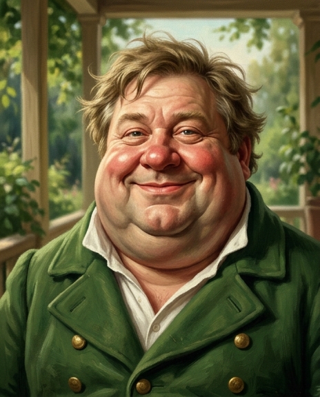 Селифан предположил, что круглый человек в сети — барин: тело у него белее, чем у прочих, и дородство почтительное. Когда барина наконец вытащили к берегу и он встал на ноги, то сразу увидел спускавшуюся с плотины коляску с Чичиковым. Он громко осведомился, обедали ли гости, и, не дожидаясь ответа, принялся командовать рыбаками, велев показать пойманного осетра.