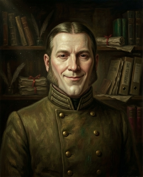 Полковник принял Чичикова ласково, долго рассказывал о трудах по просвещению крестьян и мечтал о том, что мужик его деревни, идя за плугом, будет читать Франклина или Вергилия. Когда Чичиков объявил о своём деле — купить мёртвые души, — полковник нисколько не смутился, но велел изложить просьбу письменно, чтобы та прошла через контору, комитет и управляющего. Чичиков возразил, что дело особого рода и писать о мёртвых душах затруднительно. Полковник невозмутимо предложил написать, что «души некоторым образом мёртвые, но нужно, чтобы казались как бы живые», и сослался на пример Англии и Наполеона.