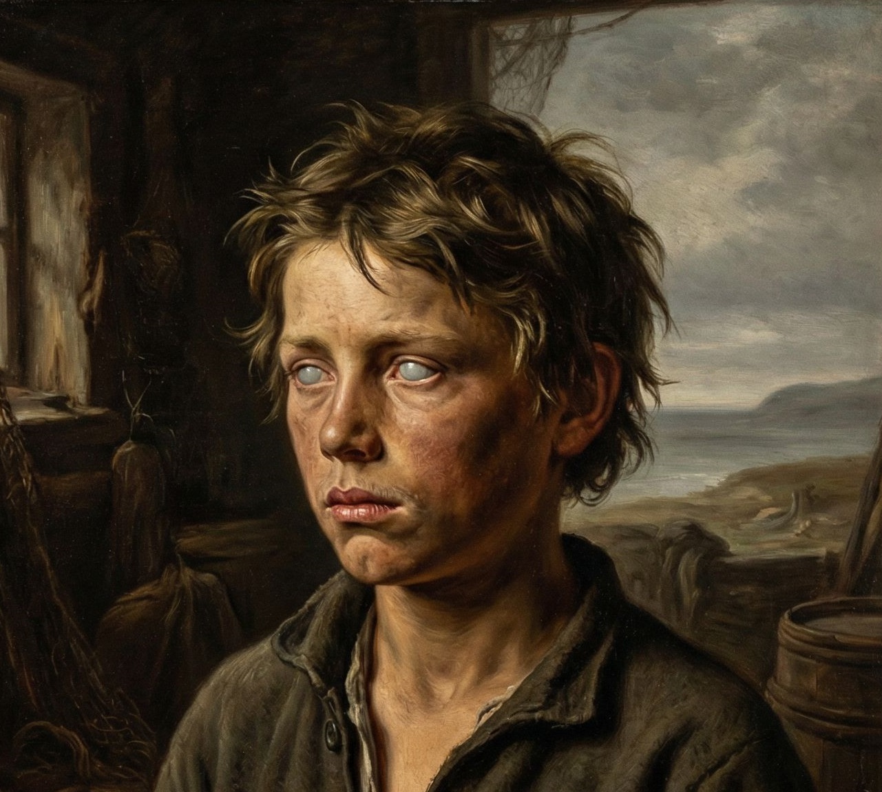 Тот сказал, что хозяйки нет дома, она ушла. Желая разглядеть его получше, Печорин зажёг спичку и поднёс её к лицу мальчика. Оказалось, что тот слеп от рождения — его глаза были белыми.