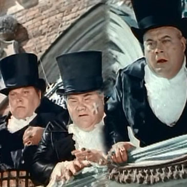 Так торговец попал на стол к Трём Толстякам и увидел, как те допрашивали Просперо. Первый Толстяк владел всем хлебом, Второму Толстяку принадлежал весь уголь, а Третий Толстяк скупил всё железо. Однако, несмотря на власть и богатство, они тряслись от страха, глядя на грозного Просперо.
