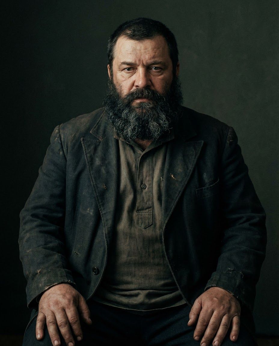 Внешним типажом напоминает персонажей с полотен художников-передвижников, изображавших трудовой рабочий люд пореформенной России: крупный мужик с провинциальной Волги, бородатый, с тяжёлыми натруженными руками и добродушной, но внутренне пустой физиономией.