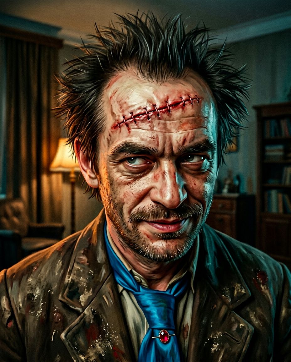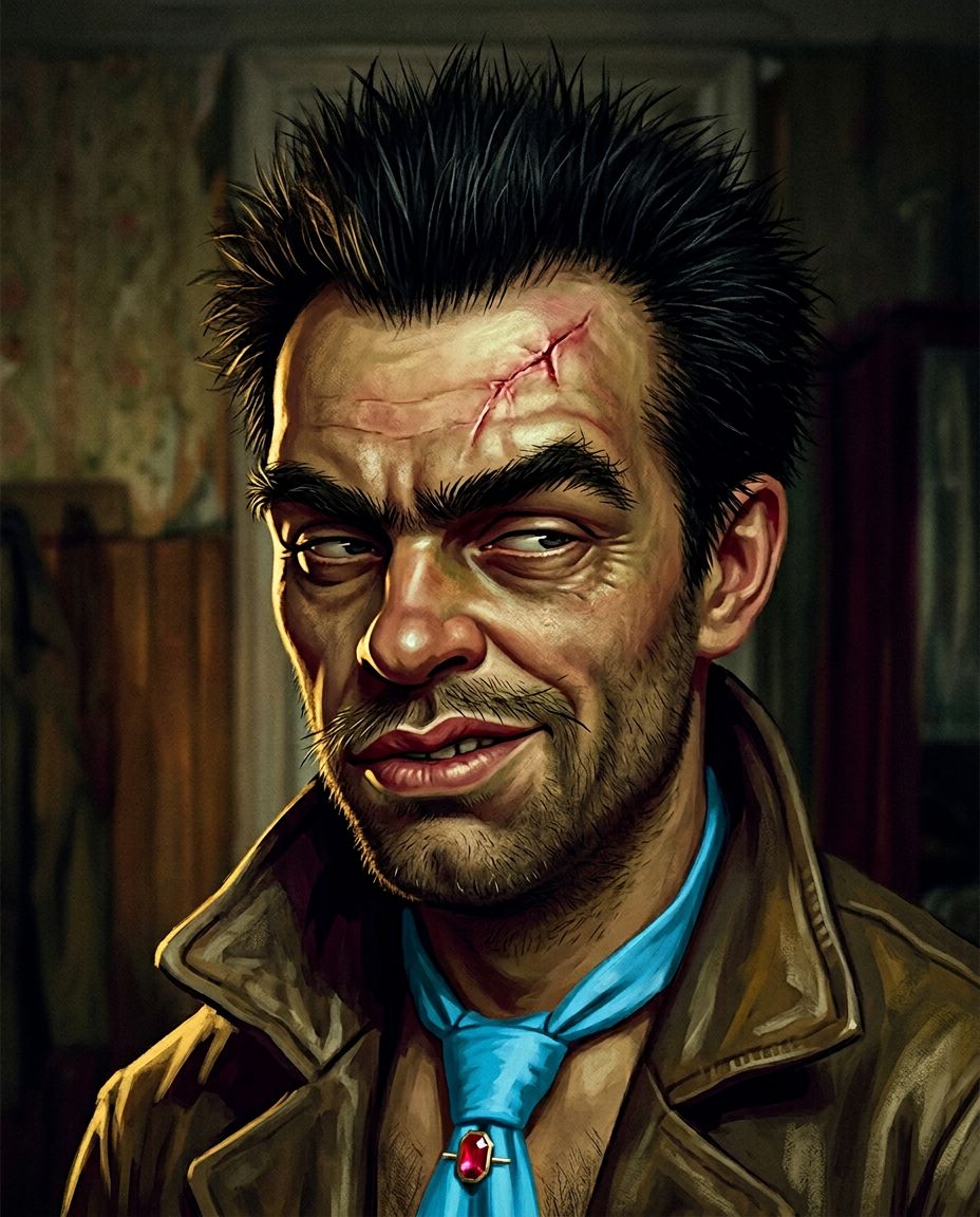 Портрет Полиграфа Полиграфовича Шарикова (в человеческом облике) из повести М. А. Булгакова «Собачье сердце».
