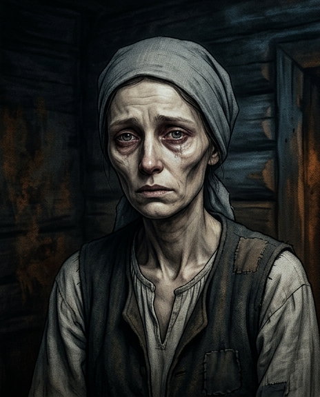 В марте в каждой хате стонали люди-горемыки: хлеб съели весь до крошки, картошка осталась только на посев, приварка не было, скотина болела. Не было ни сена, ни соломы для животных, ни дров. А тут ещё и роды. Нужно было дать бабке хлеба и вина, а крестить предстояло не в риге. Отец задумался: то ли одежду под залог нести, то ли коня продавать. Он заплакал и сказал новорождённому, что тот проклянёт этот немилый свет.